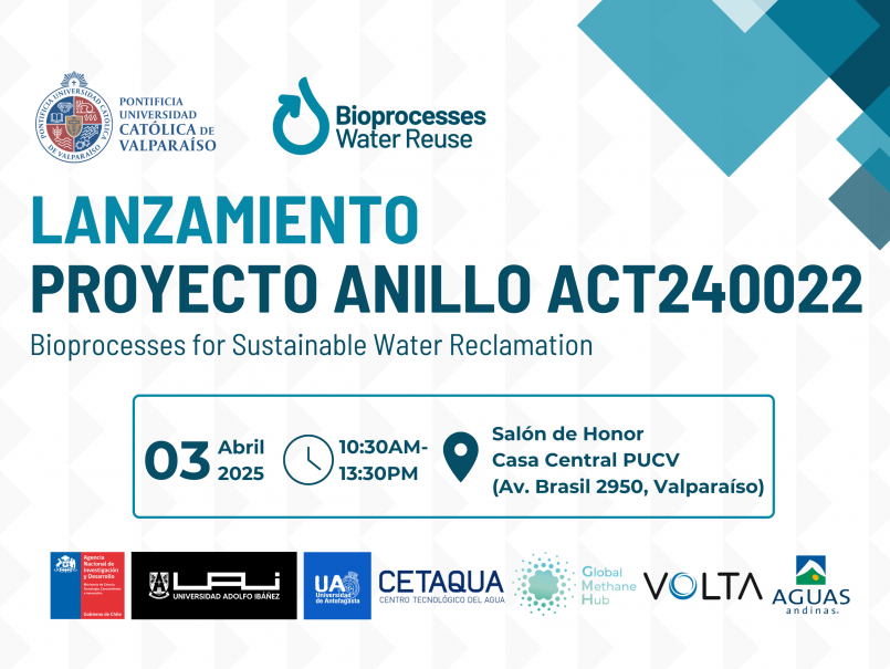 La Escuela de Ingeniería Bioquímica invita a la comunidad universitaria al lanzamiento del proyecto Anillo "Bioprocesses for sustainable water reclamation” (Bioprocesos para la recuperación sostenible del agua) (ACT240022), liderado por el académico de la PUCV David Jeison.