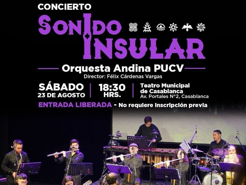 La Orquesta Andina de la PUCV se presentará el próximo sábado 23 de agosto en el Teatro Municipal de Casablanca, a partir de las 18:30 horas con entrada liberada.