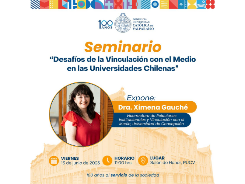 El día viernes 13 de junio, a las 11:00 horas, nuestra Vicerrectoría de Vinculación con el Medio realizará el seminario “Desafíos de la Vinculación con el Medio en las Universidades Chilenas”, actividad que se llevará a cabo en el Salón de Honor de Casa Central.