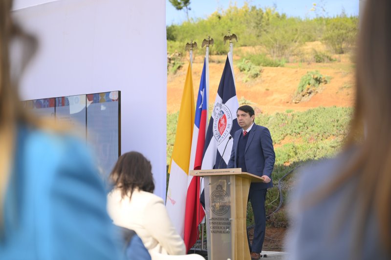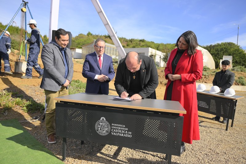 La comunidad universitaria se dio cita en el Campus Curauma para participar en la ceremonia de bendición e instalación de la primera piedra del nuevo edificio que albergará a la Escuela de Alimentos de nuestra casa de estudios.