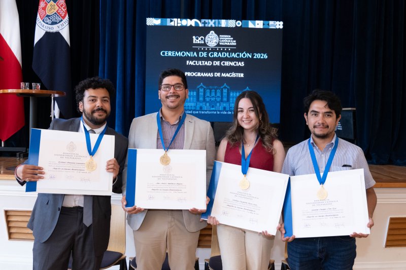 La Pontificia Universidad Católica de Valparaíso felicita a aquellos y aquellas estudiantes de los Programas de Magíster de la Facultad de Ciencias que se graduaron durante el presente año, formando ahora parte de nuestra Red Alumni.