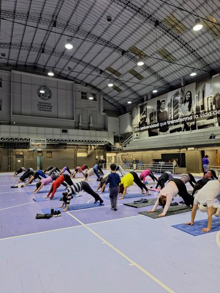 En el contexto de "Activa tu bienestar en la PUCV", la Dirección de Deportes y Actividad Física (DIDAF) realizó un "Yoga Fest" en el gimnasio de Casa Central de la Universidad. El objetivo de la actividad fue que la comunidad universitaria y los asistentes cuenten con un espacio de libre acceso para la actividad física, donde se ofrecieron Hatha Yoga, Iyengar Yoga y Hatha.