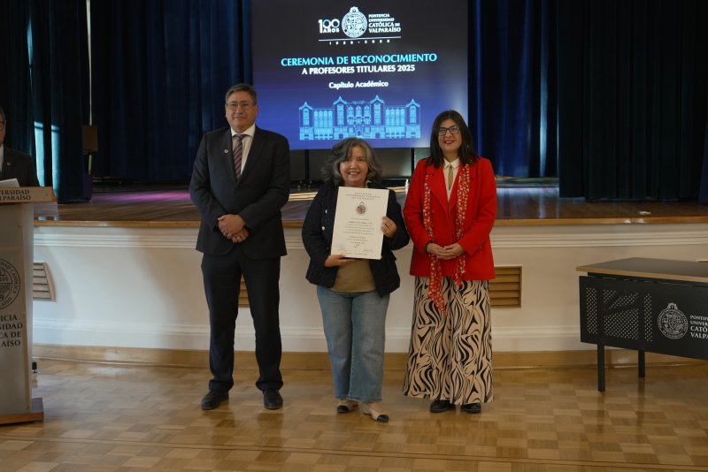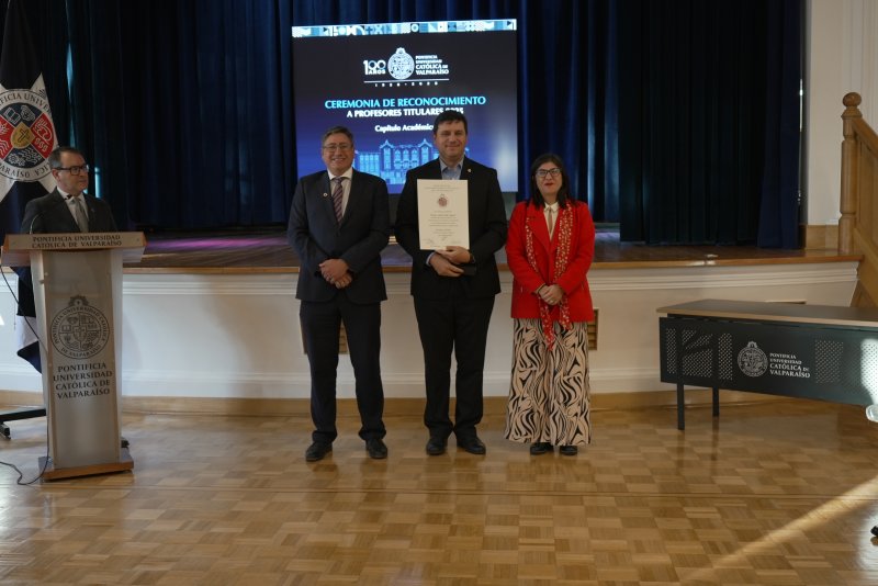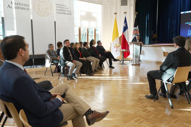 En el Salón de Honor de Casa Central, ante altas autoridades institucionales y familias, se llevó a cabo la ceremonia en que académicas y académicos recibieron los diplomas que las y los acredita como Profesores Titulares.