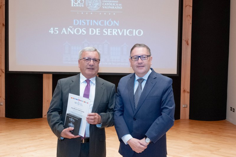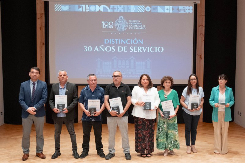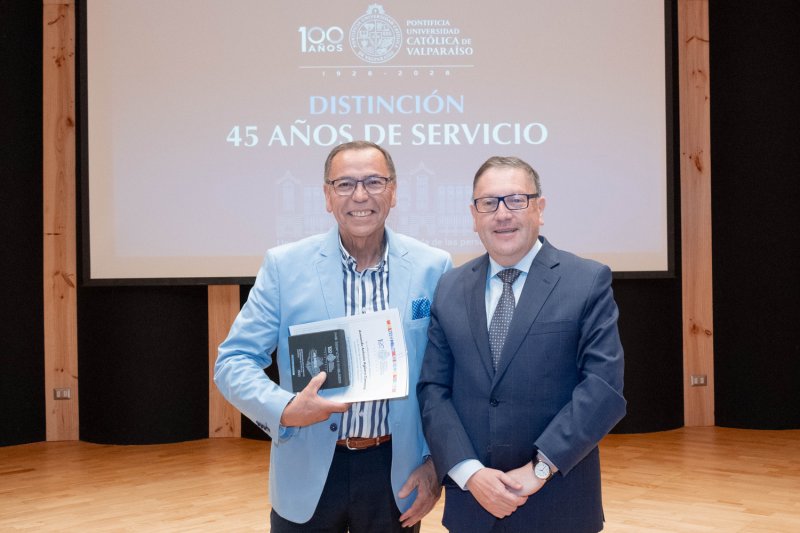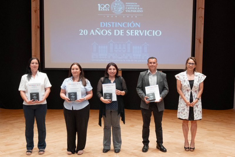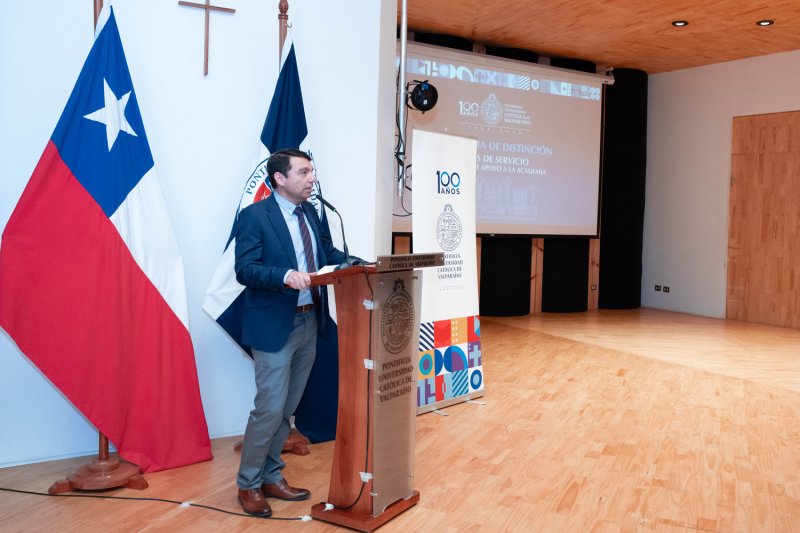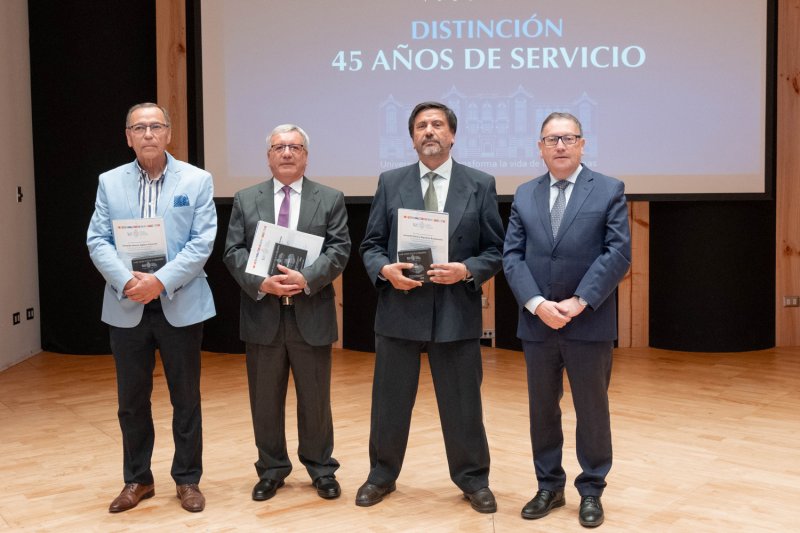 En la Sala IBC de la Facultad de Ingeniería, se efectuó la ceremonia de premiación por Años de Servicio al Personal de Apoyo a la Academia, donde se homenajeó a funcionarios y funcionarias que cumplieron entre 10 y 45 años de trabajo en nuestra Casa de Estudios. El acto fue encabezado por el rector Nelson Vásquez; el Vice Gran Canciller fray Cristian Eichin ofm; y el vicerrector de Administración y Finanzas, Álex Paz; entre otras autoridades.
