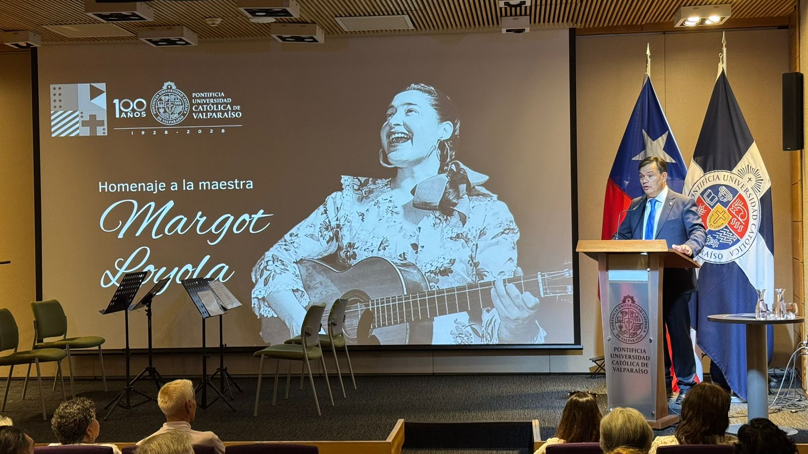 El Auditorio de PUCV Santiago fue escenario de un emotivo concierto en homenaje a la reconocida folclorista Margot Loyola, a 10 años de su fallecimiento. El encuentro tuvo por finalidad rendir tributo a quien fuera figura fundamental de nuestra cultura y cuya huella sigue influyendo en la creación, la investigación y la enseñanza de las tradiciones populares de Chile.