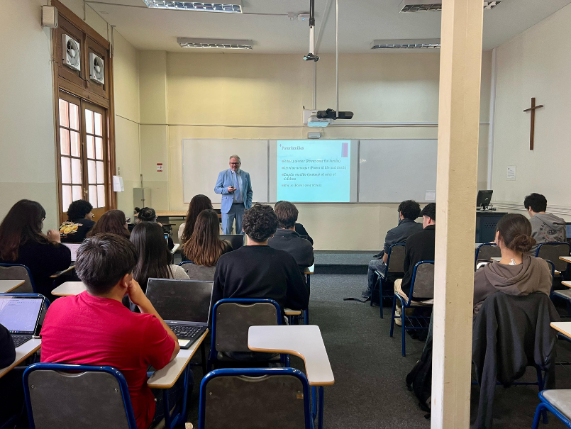 Durante su estadía, el profesor Gerkens desarrolló diversas actividades académicas. Entre ellas, impartió una clase magistral en inglésa estudiantes de primer año sobre categorías en el derecho romano, contribuyendo con los objetivos de internacionalización de la Escuela de Derecho a través del uso del inglés en instancias formativas.