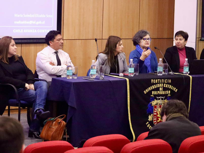 En la oportunidad se desarrollaron dos paneles, versando el primero de ellos sobre “La implementación de la Ley Karin desde una perspectiva institucional". En la instancia expusieron y dialogaron Rodrigo Cárdenas, abogado de la Oficina de Defensa Laboral de Valparaíso; Rachel Aránguiz, coordinadora de Relaciones Laborales de la Dirección del Trabajo de Valparaíso; y María Paz Bartolucci, jueza del Juzgado de Letras del Trabajo de Valparaíso. Moderó Tania Rojas, profesora de la UV.