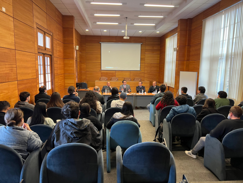 El encuentro también contó con la participación del capitán Juan Pablo Biggs, quien expuso sobre el rol que pueden desempeñar los abogados dentro de la Armada de Chile, destacando áreas de trabajo como los tribunales militares, la regulación del territorio marítimo, el derecho del mar, la contraloría, la administración de personal y otras funciones jurídicas especializadas.