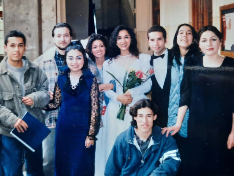 Durante sus años de estudiante paralelamente, trabajó en diversos oficios para poder mantenerse, junto a un grupo de compañeras que atravesaban la misma situación: “a veces apenas alcanzábamos la asistencia mínima, ¡pero pudimos!” Sus primeros trabajos en el mundo jurídico llegaron gracias a la propia red de la Escuela. Por eso siempre ha considerado la Escuela como su segundo hogar: “la pisé un día y nunca más me fui, ahí trabajé, estudié pregrado, hice universidad, hice mis postítulos y mi posgrado como Magister en Derecho Administrativo mención ordenamiento territorial y derecho medioambiental, y ahí también contraje matrimonio religioso en la Capilla de la Universidad, mi lugar de paz e introspección”.