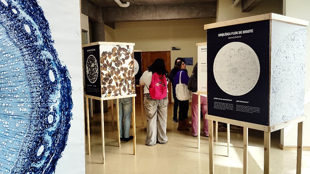 Al finalizar el seminario, los profesores Orlando Jeldes y Sebastián Reyes invitaron al público a la inauguración de la exposición “Flora Viva: Una mirada a la belleza botánica”, un proyecto financiado por la PUCV que une arte y ciencia al visibilizar el hermoso arte que se esconde en la estructura de diversas plantas endémicas de la región de Valparaíso, siendo posible observarlas mediante cortes anatómicos ampliados.