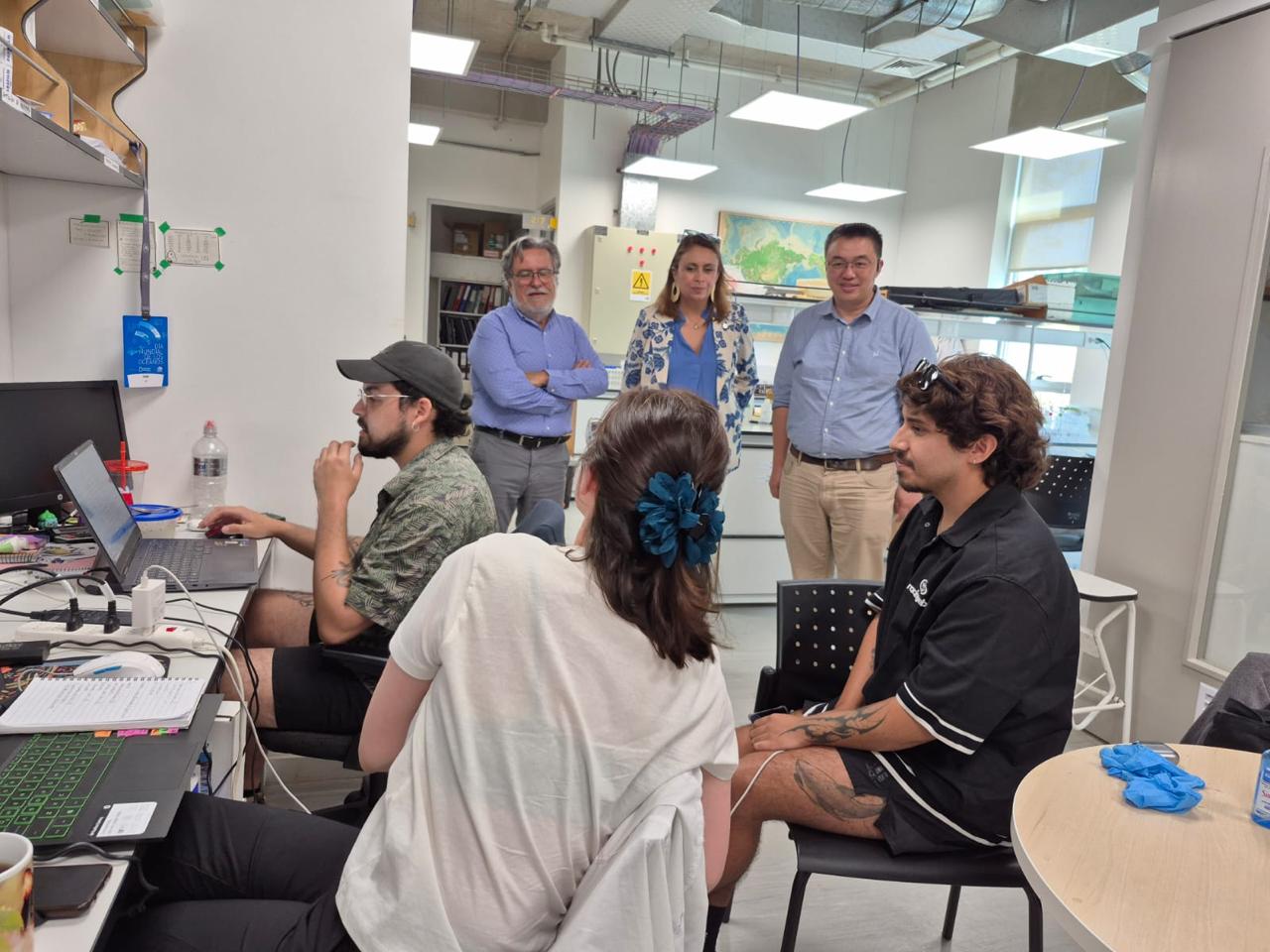 El académico fue recibido por el jefe de docencia Exequiel González, en representación de la dirección de la Escuela de Ciencias del Mar, y acompañado por Lorena Muñoz, profesional de la Dirección de Asuntos Internacionales de la PUCV. Durante su visita, recorrió las instalaciones de la unidad académica, incluido el CIAS y sostuvo un encuentro con ayudantes de investigación vinculados al proyecto DEOX.