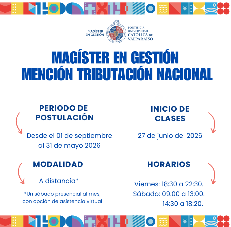 Usted está en: Portada | Escuela de Comercio PUCV Magíster en Gestión mención Tributación Nacional Descargas Brochure 2024 Twittear subir volver