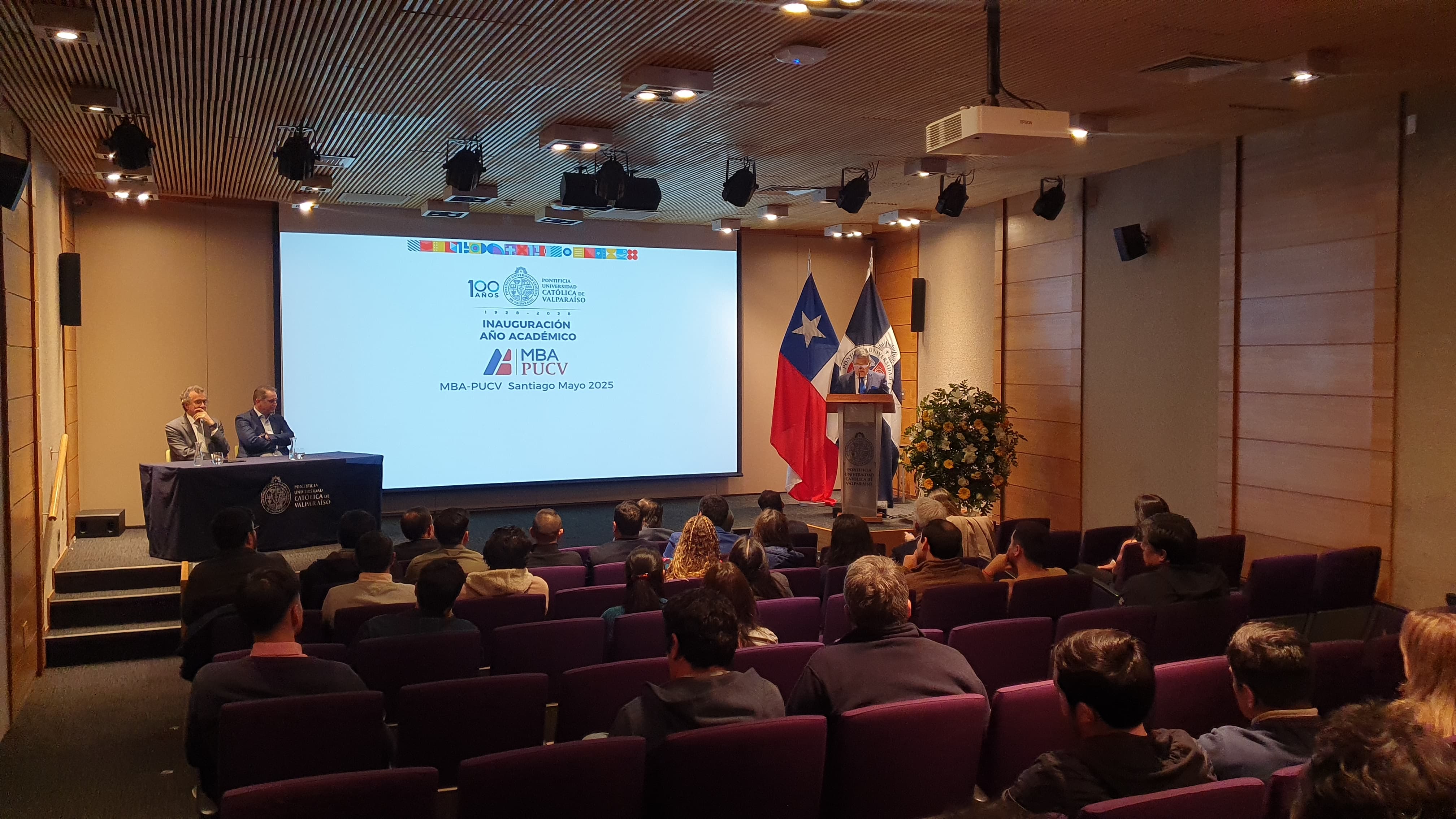 El viernes 30 de mayo se llevó a cabo la Inauguración del año Académico de la Promoción Santiago mayo 2025 del MBA PUCV, impartido por la Escuela de Negocios y Economía de la Pontificia Universidad Católica de Valparaíso. La ceremonia contó con la presencia del director de la Escuela, Rodrigo Navia; el miembro del Comité Académico MBA PUCV, Mario Valcarce, profesores, funcionarios y estudiantes de programa. En la oportunidad, se presentó la clase magistral “Crisis: una oportunidad para instalar capacidades”, dictada por el gerente general del grupo Falabella, Alejandro González. El MBA de la PUCV es un programa de excelencia, desarrollado desde un enfoque pedagógico que permite pasar de la teoría a la práctica con rigurosidad y mantenerse en línea con las necesidades del mercado y las mejores prácticas internacionales en materia de negocios. Comenzó a impartirse en Valparaíso hace 20 años, se extendió a Santiago en el 2014 y desde 2019 también está presente en la ciudad de Punta Arenas, convirtiéndose en uno de los programas de MBA más australes del mundo.
