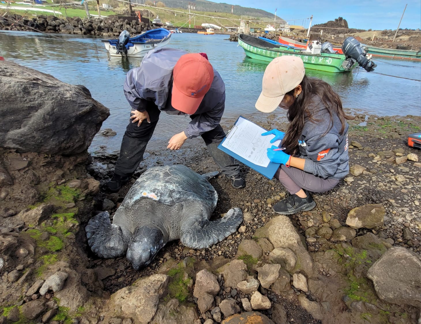 A su vez, en relación al proyecto de investigación, la académica señala que “la tortuga verde (Chelonia mydas) es la especie más frecuente en las costas de Rapa Nui y se encuentra catalogada “En Peligro de Extinción”, tanto a nivel nacional como global. Más allá de su valor ecológico, estos animales están profundamente vinculados a la cultura local y constituyen parte esencial de la identidad rapanui. Desde 2018, llevamos a cabo monitoreos ecológicos y sanitarios de esta especie en la isla, con el propósito de generar información científica que sirva de base para la implementación de acciones y estrategias de conservación local. Todo esto con un enfoque de conservación basado en la comunidad.