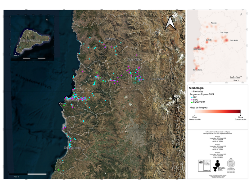 La gestión de Explora requiere pensarse en un esquema de planificación territorial de la región. El ecosistema CTCI que se ha construido está presente de forma sistemática en las 8 provincias de la región, en el Chile continental e insular, con 189 jardínes,185 establecimientos, de los cuales 55 son rurales. Solo en el 2024 se apoyó a 165 educadoras, 186 profesores participantes, 1723 párvulos beneficiados y 1920 niñas, niños y jóvenes que diseñaron sus proyectos de ciencia escolar con nosotros.