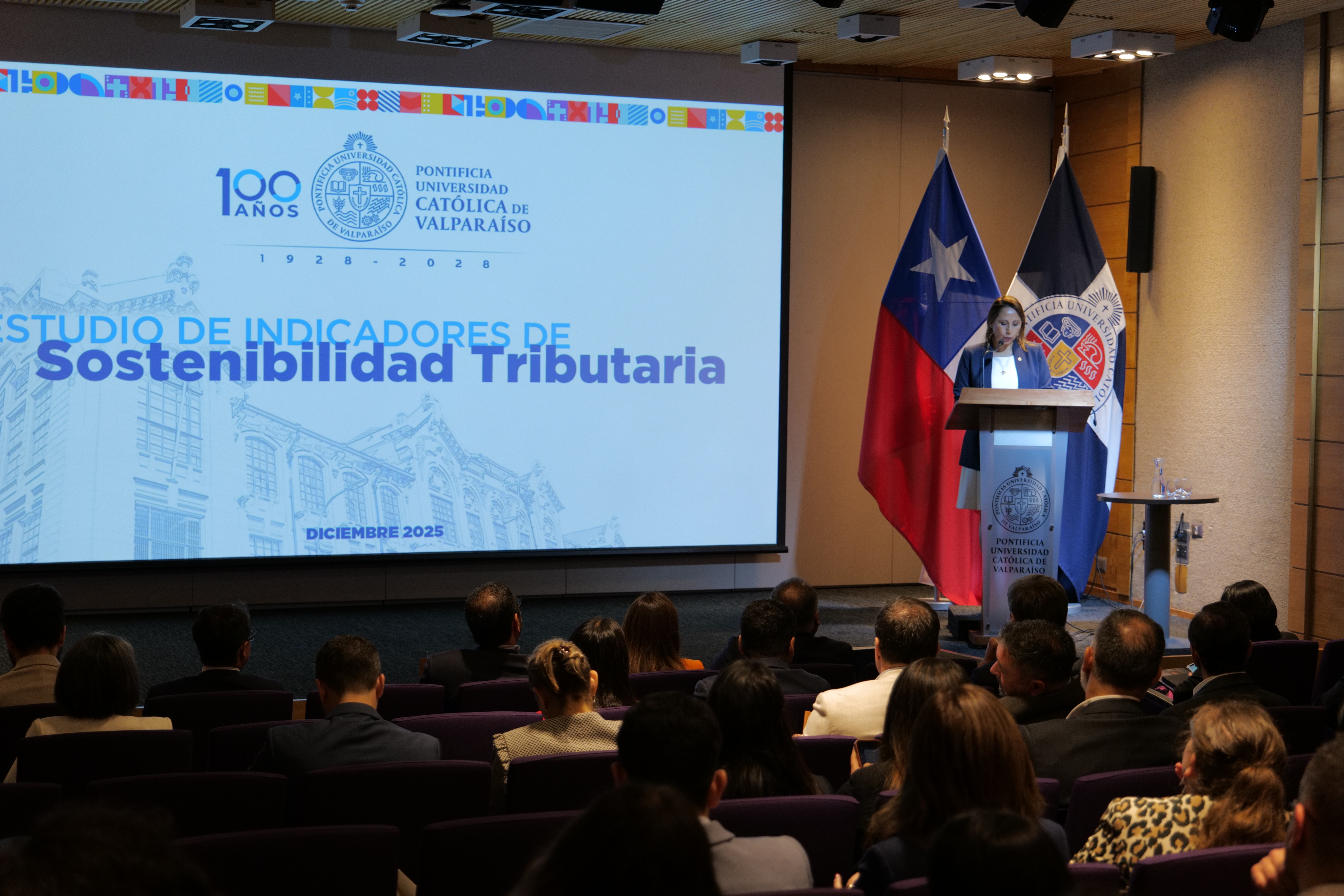 La actividad se desarrolló en PUCV Santiago y contó con la presencia del Vicerrector de Investigación, Creación e Innovación, Luis Mercado; la Vicerrectora de Vinculación con el Medio, Jacqueline Páez y la Directora Nacional (s) del Servicio de Impuestos Internos, Carolina Saravia.