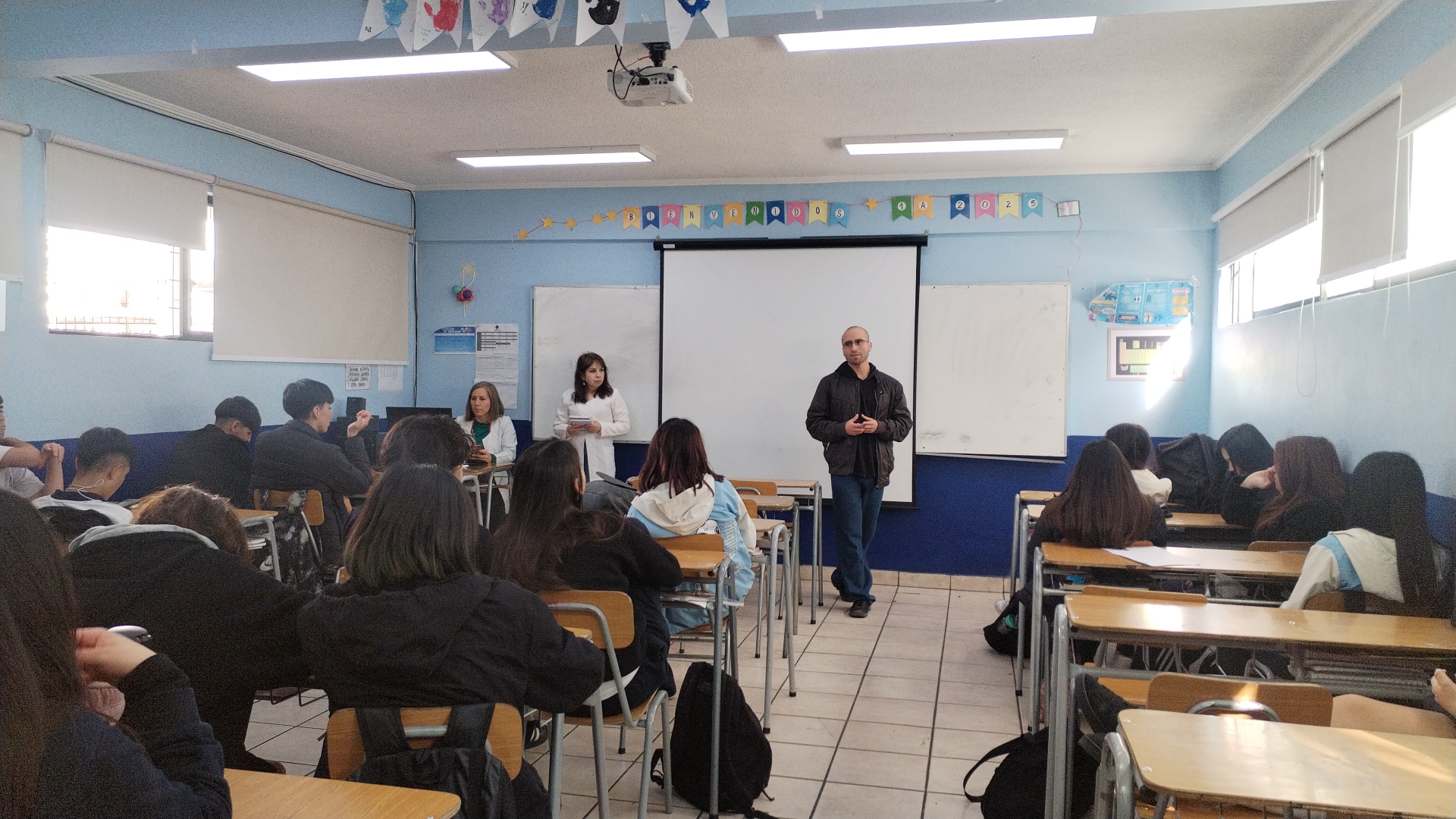 Participaron estudiantes de cuarto medio, la profesora de arte del liceo —invitada especialmente para esta ocasión— y docentes de distintas áreas, entre ellos José Moraga y David Jeria, ambos egresados del Instituto de Filosofía de la Pontificia Universidad Católica de Valparaíso.