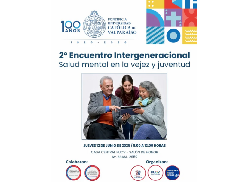 Este jueves 12 de junio, a partir de las 09.00 horas, se realizará el 2° Encuentro Intergeneracional 2025, una instancia que busca fomentar la reflexión sobre la importancia de la salud mental y el bienestar tanto en la vejez como en la juventud.