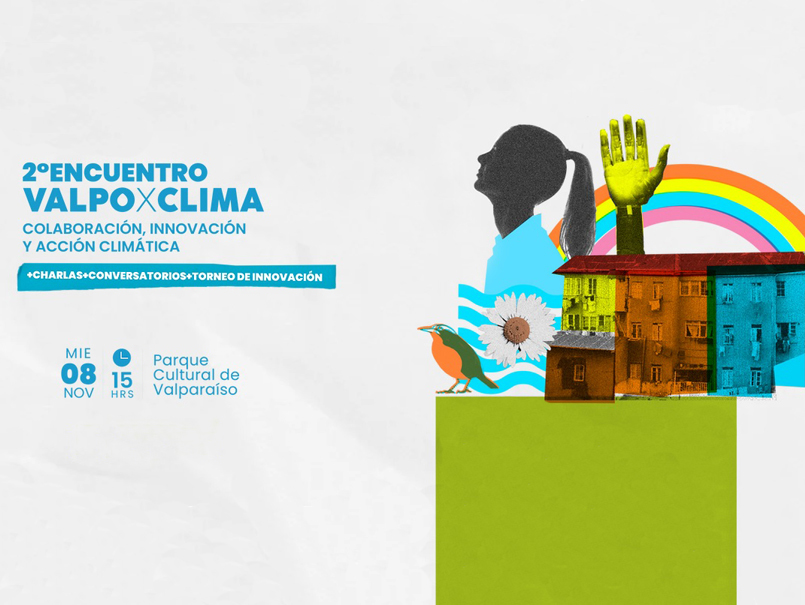 El miércoles 8 de noviembre, a partir de las 15 horas en el Parque Cultural de Valparaíso, se realizará el 2° Encuentro ValpoXClima: “Colaboración, innovación y acción climática”, evento que contempla charlas, conversatorios y torneos de innovación.
