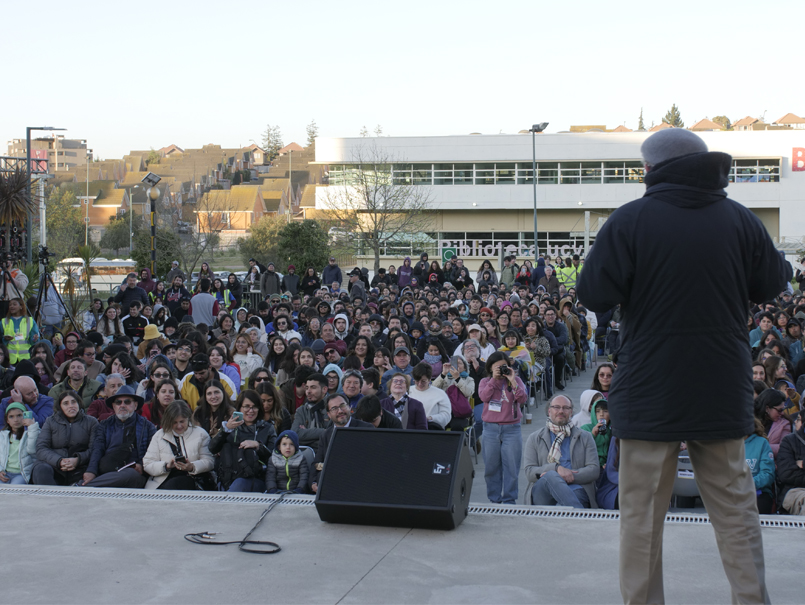 El destacado astrónomo cautivó al público conformado fundamentalmente por familias y vecinos del campus, en especial por su cercanía y particular forma para explicar fenómenos que muchas veces parecieran ser complejos, como es la composición del sistema solar, los planetas y las misiones espaciales que se han realizado a la luna, así como también detalles sobre el programa Artemisa, que se realizará durante el 2025.