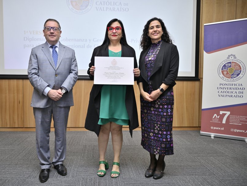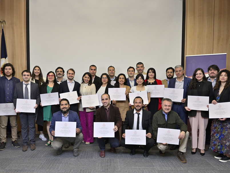 En el salón Quinto Centenario de Casa Central se realizó la certificación y entrega de diplomas a la primera generación de alumnas y alumnos que cursaron el diplomado “Gobernanza y Gestión Público-Privada para el Desarrollo Regional de Chile”, cuya implementación fue el hito inicial de la creación de la futura Escuela de Gobierno de la Universidad.