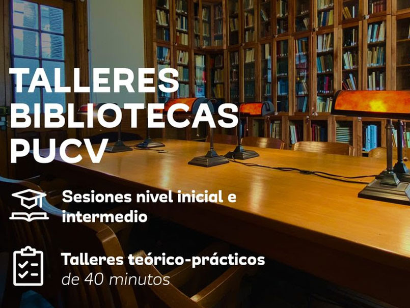 Bibliotecas PUCV abre postulaciones al nuevo ciclo de talleres de abril 2023. Estas instancias permiten fortalecer y apoyar tu formación. Los talleres tienen una modalidad teórico-práctica, son virtuales mediante Zoom y duran aproximadamente 40 minutos.