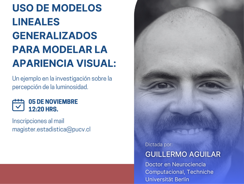 El martes 5 de noviembre, a las 12:20 horas, se llevará a cabo la charla titulada "Uso de modelos lineales generalizados para modelar la apariencia visual", evento que se realizará de manera virtual.