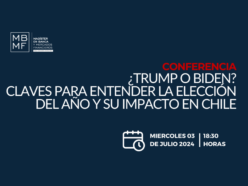 El 3 de julio, a las 18:30 horas, se llevará a cabo una conferencia virtual sobre el impacto de las elecciones en Estados Unidos en la economía chilena a través de la plataforma Zoom, evento organizado por el Programa de Magíster en Banca y Mercados Financieros de la Facultad de Ciencias Económicas y Administrativas.
