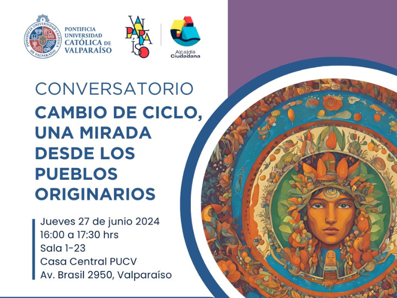 El 28 de junio, entre las 16 y 17:30 horas, se realizará el conversatorio "Cambio de ciclo, una mirada desde los pueblos originarios", evento organizado por nuestra Dirección de Inclusión a través del Programa Interculturalidad PUCV y en colaboración con la Ilustre Municipalidad de Valparaíso.