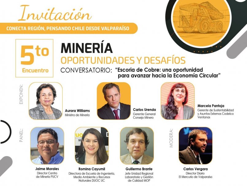 El encuentro se efectuará el miércoles 26 de junio, a partir de las 8:45 horas en el Centro de Extensión Duoc UC, ubicado en Av. Errázuriz 1020, Valparaíso. El conversatorio se transmitirá de manera online por Soy TV y tendrá como principal invitada a la ministra de minería, Aurora Williams; el gerente general del Consejo Minero, Carlos Urenda; y la gerente de sustentabilidad y asuntos externos de Codelco Ventanas, Marcela Pantoja.