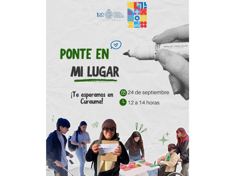 La Dirección de Inclusión PUCV invita a organizaciones y la comunidad universitaria a participar este miércoles 24 de septiembre en la feria de sensibilización “Ponte en mi lugar”, un espacio de encuentro, dinámicas y reflexión para promover comunidades más inclusivas.