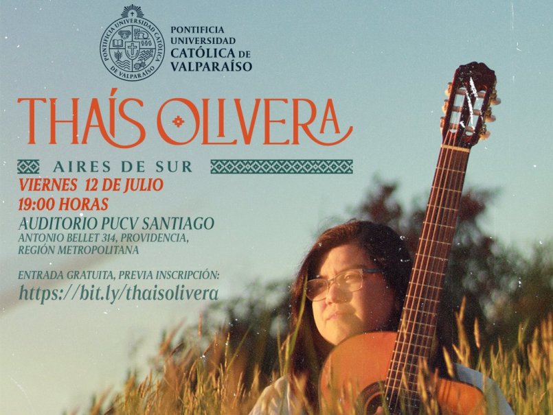 La música ligada a los ritmos folclóricos llegará al auditorio de PUCV Santiago, a través de la multiinstrumentista, cantante e intérprete Thaís Olivera, quien se presentará este viernes 12 de julio a las 19 horas inaugurando la temporada de conciertos en la sede santiaguina de nuestra Casa de Estudios.