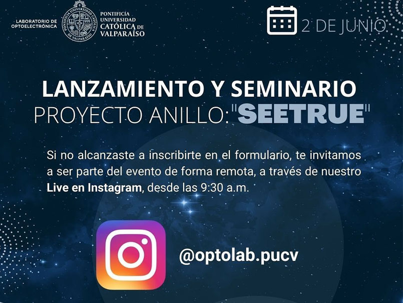 El Laboratorio de Optoelectrónica de la Escuela de Ingeniería Eléctrica de la PUCV realizará el Lanzamiento del Proyecto Anillo SEETRUE - “Sharp wavefront sEnsing for adaptivE opTics in gRound-based satellite commUnications and spacE surveillance”, trabajo que se realiza en colaboración con la Universidad de La Frontera y la Universidad de Chile.