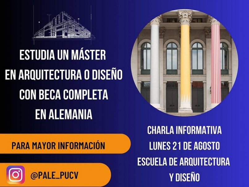 El Programa de Alemán de la PUCV y el DAAD invita a una charla informativa para los interesados en estudiar un Máster en Arquitectura o Diseño en Alemania con beca completa del Servicio Alemán de Intercambio Académico.