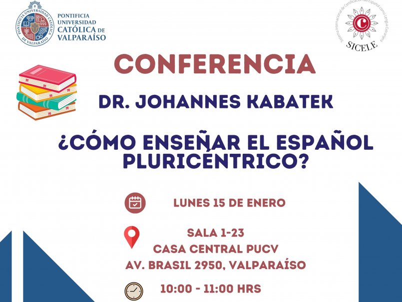 El Dr. Johannes Kabatek efectuará la conferencia titulada “Cómo enseñar el Español Pluricéntrico”, la que se efectuará el próximo lunes 15 de enero en la Sala 1-23 de la Casa Central PUCV, ubicada en Av. Brasil 2950, Valparaíso, a partir de las 10 horas.