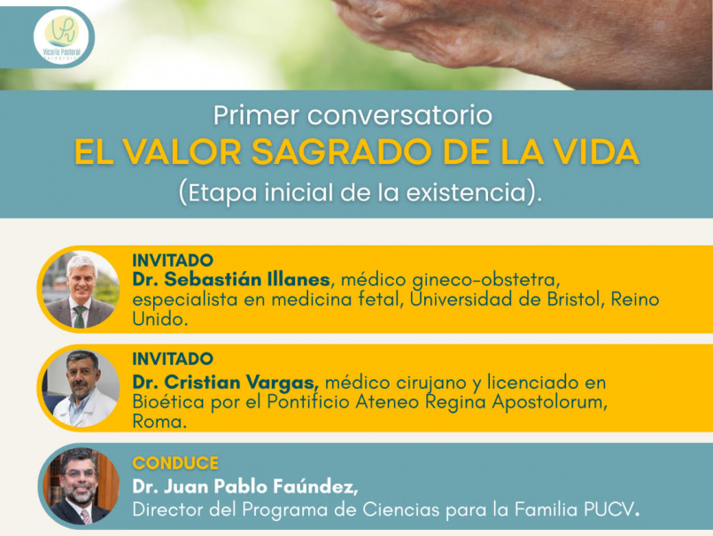 Con la organización de la Vicaría de la Pastoral de la Diócesis de Valparaíso y el Programa de Ciencias para la Familia, se realizará el Primer Conversatorio “El valor sagrado de la vida (etapa inicial de la existencia)”, el que se desarrollará el miércoles 12 de noviembre, a partir de las 17 horas en la Sala Emilio Tagle 1-23 de Casa Central (Av. Brasil 2950, Valparaíso).