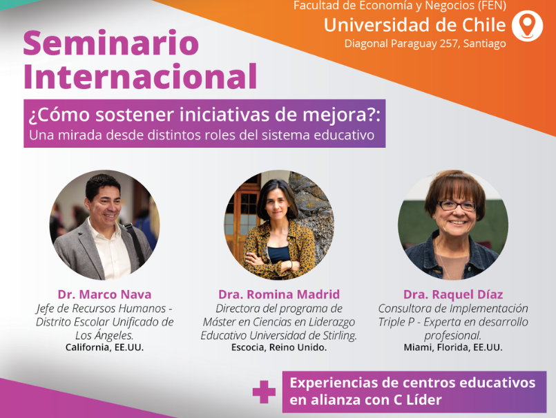 El miércoles 21 de agosto, entre las 9 y 13:30 horas, se llevará a cabo el seminario internacional “¿Cómo sostener iniciativas de mejora?: Una mirada desde distintos roles del sistema educativo”, evento organizado por el Centro Líderes Educativos a través de C Lider y que se llevará a cabo en la Facultad de Economía y Negocios de la Universidad de Chile.