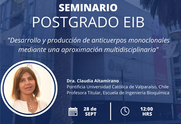 La Escuela de Ingeniería Bioquímica de la Pontificia Universidad Católica de Valparaíso, Chile, presenta a las y los interesados su próximo seminario "Desarrollo y producción de anticuerpos monoclonales mediante una aproximación multidisciplinaria", dirigido a profesionales y estudiantes del área de la ingeniería y la biotecnología.