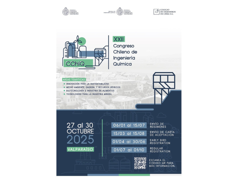 La instancia, organizada por la Escuela de Ingeniería Química de la PUCV y el Colegio de Ingenieros de Chile A.G., reunirá a investigadores, estudiantes, profesionales y empresas vinculadas al área, con el objetivo de compartir experiencias, avances científicos y soluciones tecnológicas que aporten a un futuro más sostenible.