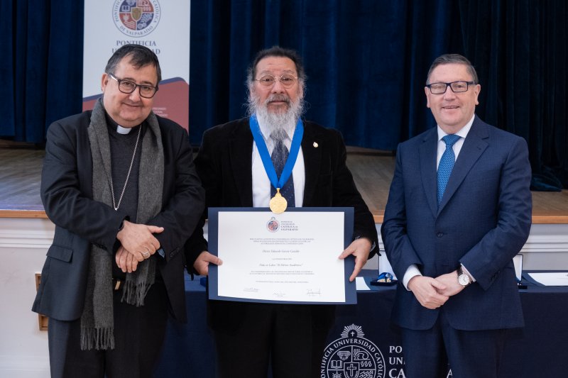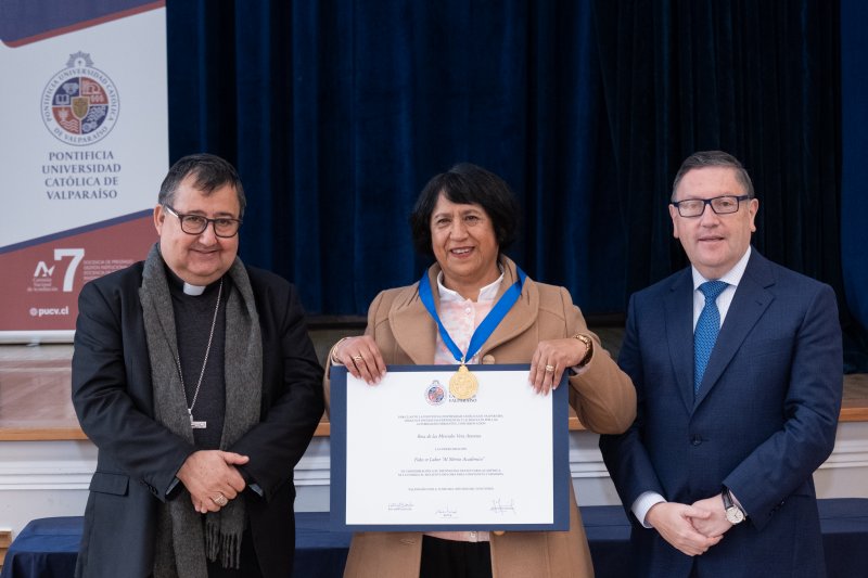 Un total de siete profesores y profesoras de la Universidad recibieron la condecoración Fides et Labor al Mérito Académico, tradicional ceremonia que se realizó en Casa Central y que fue encabezada por el Obispo de Valparaíso y Gran Canciller de la PUCV, Monseñor Jorge Patricio Vega, y el rector Nelson Vásquez.