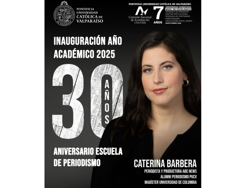 La Escuela de Periodismo PUCV celebra 30 años de historia y realizará la Inauguración del Año Académico 2025 junto a su Alumni, Caterina Barbera, periodista y productora de ABC News.