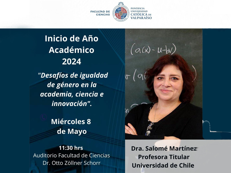 La ceremonia, que tendrá lugar en el auditorio de la Facultad de Ciencias “Dr. Otto Zöllner Achorr”, en el Campus Curauma (Avenida Universidad 330) contará con la participación de la Dra. Salomé Martínez, académica de la Universidad de Chile, quien dictará la conferencia “Desafíos de igualdad de género en la academia, ciencia e innovación”.
