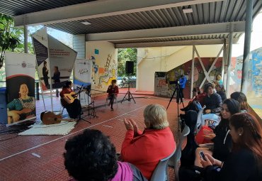 En el anfiteatro del Campus Sausalito se realizó la presentación “Mujer, voz y guitarra” donde participó la cantora Bernardita Castillo y asistieron alumnos de la asignatura de Cultura Tradicional del Instituto de Música, quienes fueron acompañados por la profesora Viviana Morales y otros representantes de la comunidad universitaria que siguieron atentamente la muestra de música tradicional.