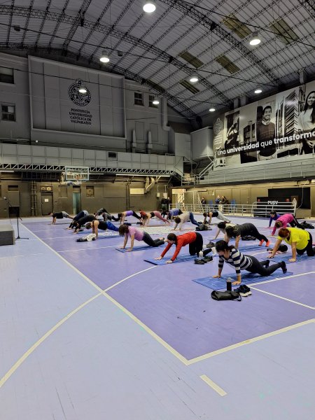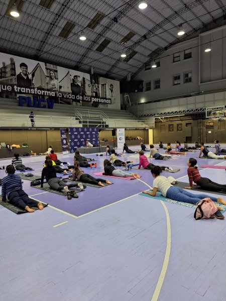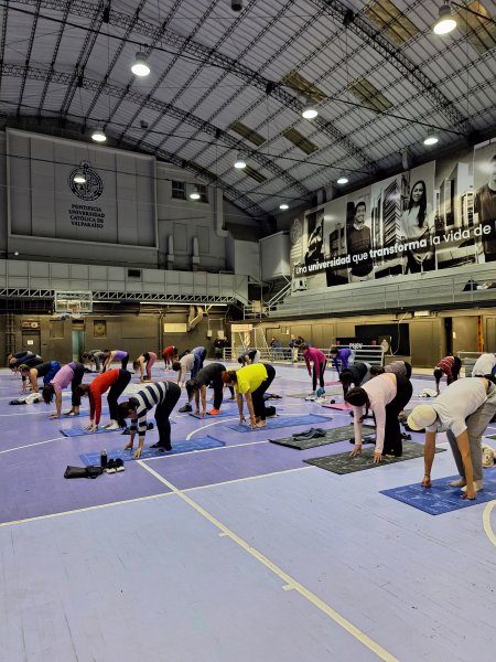 En el contexto de "Activa tu bienestar en la PUCV", la Dirección de Deportes y Actividad Física (DIDAF) realizó un "Yoga Fest" en el gimnasio de Casa Central de la Universidad. El objetivo de la actividad fue que la comunidad universitaria y los asistentes cuenten con un espacio de libre acceso para la actividad física, donde se ofrecieron Hatha Yoga, Iyengar Yoga y Hatha.