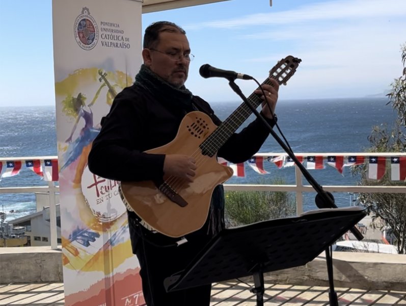 Junto a su guitarra, el músico deleitó a las y los asistentes con distintas creaciones del floclor nacional.