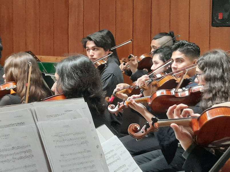 Estudiantes, funcionarios, vecinos del campus, una delegación de alumnos de un colegio del sector, familiares de los jóvenes intérpretes, entre otros. Así de variado, atento y entusiasta fue el público que llegó al concierto que ofreció la Orquesta Juvenil del Conservatorio de Música de la PUCV en la capilla San Alberto Magno del campus Curauma, bajo la dirección de Manuel Simpson Sepúlveda.