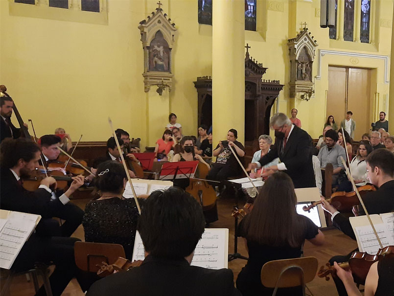 Un amplio y diverso marco de público llegó hasta la iglesia viñamarina Nuestra Señora de Lourdes en Agua Santa, para participar del concierto que la Orquesta Clásica PUCV, junto a estudiantes del Instituto de Música de la Universidad, ofreció como parte de su programa anual.