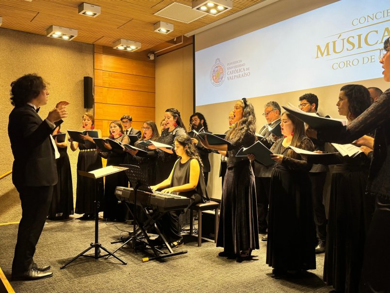 Un hermoso concierto de música sacra realizó el Coro de Cámara de la Universidad en el auditorio Fernando Rosas de PUCV Santiago. La agrupación se presentó bajo la dirección de Manuel Suazo, que interpretó un nutrido repertorio de música sacra, destacando obras de W. A. Mozart y Antonio Vivaldi, entre otros.