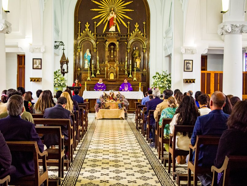 Previamente, el Gran Canciller y Obispo de Valparaíso, Monseñor Jorge Patricio Vega Velasco, acompañado del Obispo Auxiliar de Valparaíso, Monseñor Mario Salas; el Vice Gran Canciller fray Cristian Eichin; y el Capellán General, José Pablo Valencia, oficiaron una Eucaristía en la Capilla donde se reunieron autoridades, académicos (as), funcionarios (as) y estudiantes de la Universidad.