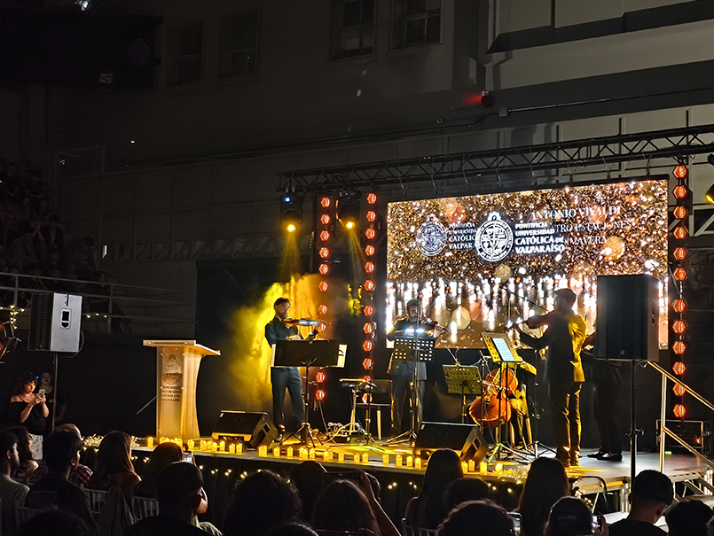 El gimnasio de la Casa Central de la PUCV se transformó este jueves en un escenario íntimo y evocador para recibir a los nuevos estudiantes de la universidad. Con sus espacios en penumbra, velas y una delicada iluminación inspirada en la estética de los conciertos Candlelight, el lugar se convirtió en el marco de una experiencia artística que sorprendió a los novatos en su primer acercamiento a la vida universitaria.